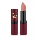 رژلب مات مخملی گلدن رز با دارا بودن رنگدانه های غنی و با کیفیت، حالتی مخملی و نرم به لب های شما می بخشد. این رژ لب بادوام، حاوی ویتامین E و فرمولاسیونی رطوبت رسان است که به راحتی بر روی لب ها لغزیده و آنها را آبرسانی و تغذیه می کند. به علاوه از نظر متخصصین پوست آزمایش شده و فاقد پارابن می باشد.این مدل از رژ لب گلدن رز، با رطوبت رسانی و تغذیه ی لب های شما، ظاهری مخملی و مات به آنها می بخشد